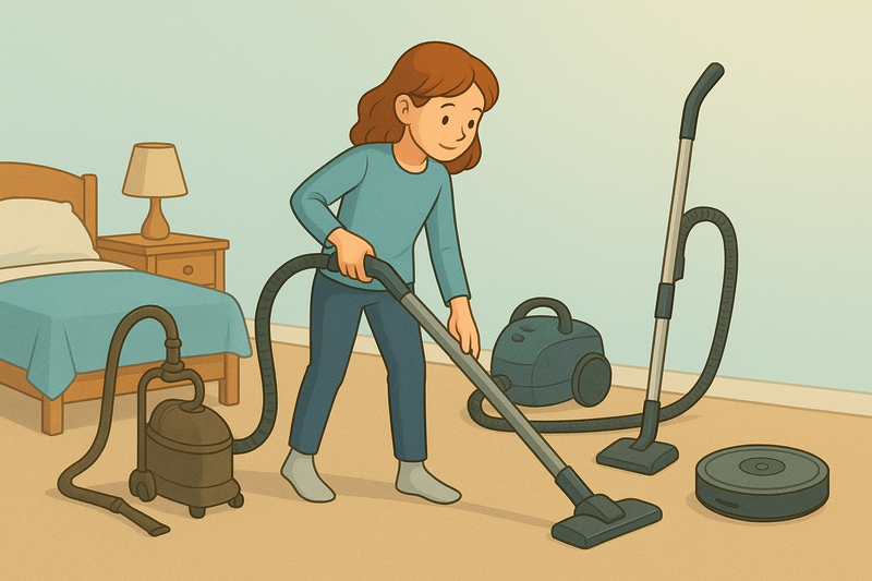 Regarde cette personne qui passe l'aspirateur. Elle dispose de plusieurs machines dont un est un modèle robotisé récent, et un autre date des années 1920.